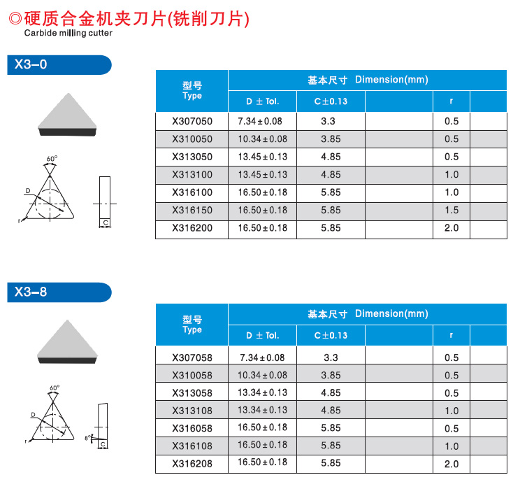 三角形硬質(zhì)合金銑削刀片(鎢鋼機(jī)夾刀片)